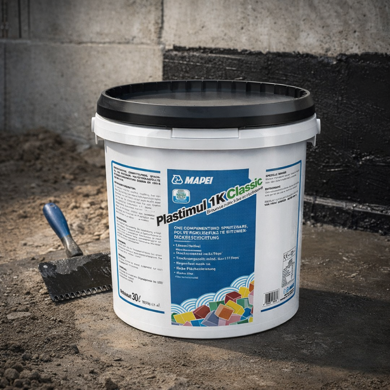Mapei Plastimul 1K Classic je jednozložkový izolačný materiál určený na izoláciu pivnice, základov a sokla. Nanášaním hladítkom v množstve 2,6kg / m2 vznikne jednoliata vrstva bez spojov. Výsledkom ručnej aplikácie je bezspojová izolácia, ktorá ochráni váš dom pred zemnou vlhkosťou.