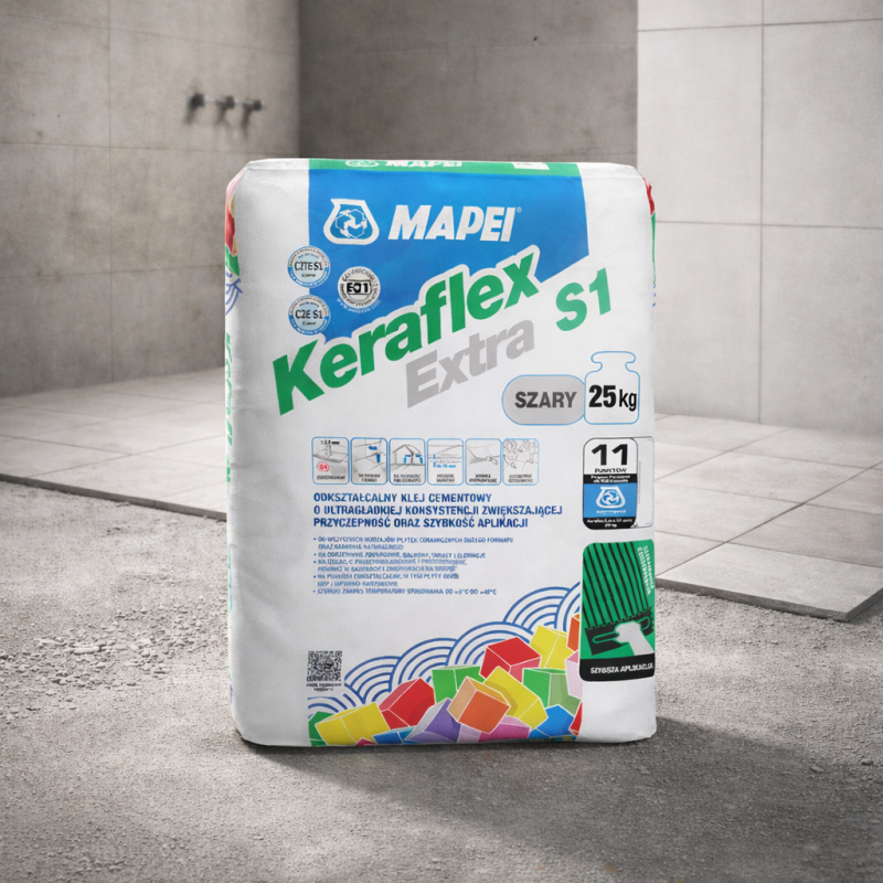 Mapei Keraflex Extra S1 je špeciálne cementové lepidlo na lepenie prírodného kameňa a obkladov a dlažieb do rozmeru 120cm x 120cm. Je to lepidlo so zníženým sklzom a s predĺženou dobou zavädnutia. Používa sa na lepenie obkladových prvkov navyše aj v bazénoch v kombinácii s hydroizoláciou Mapei Mapelastic. Je vhodný na lepenie obkladu na obklad v kombinácii s penetrákom Mapei Eco Prim Grip.