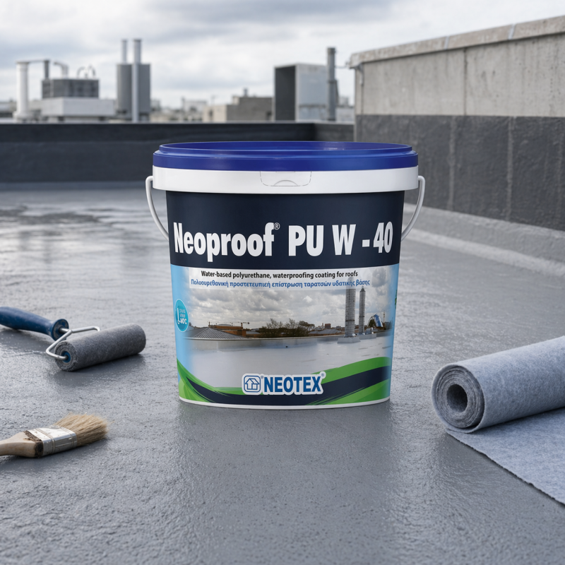 NEOPROOF PU W-40 je vodouriediteľná polyuretánová hydroizolácia určená na ploché strechy. Vytvára pružnú a vodotesnú membránu s odolnosťou proti UV žiareniu a poveternostným vplyvom. Veľkou výhodou je vodouriediteľné zloženie a jednoduchá aplikácia valčekom alebo štetcom.